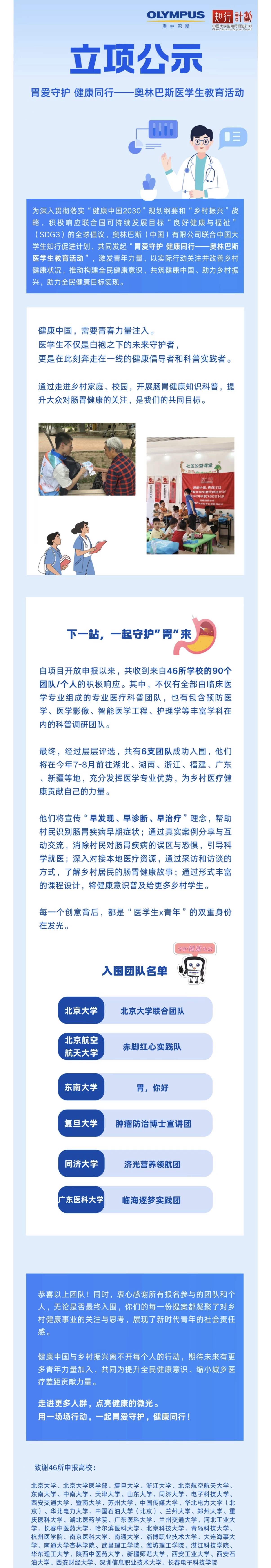 公示|胃爱守护 健康同行——奥林巴斯医学生教育活动入围团队公布!
