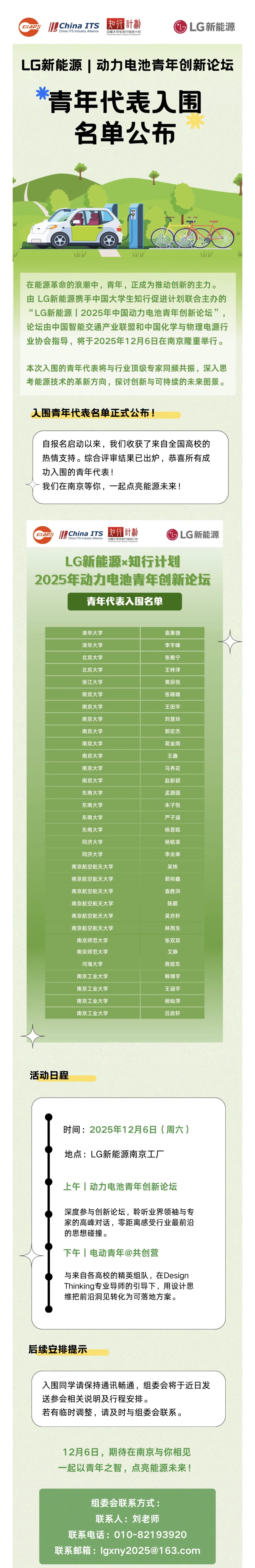 入围名单公布|LG新能源2025年中国动力电池青年创新论坛青年代表入围名单公布