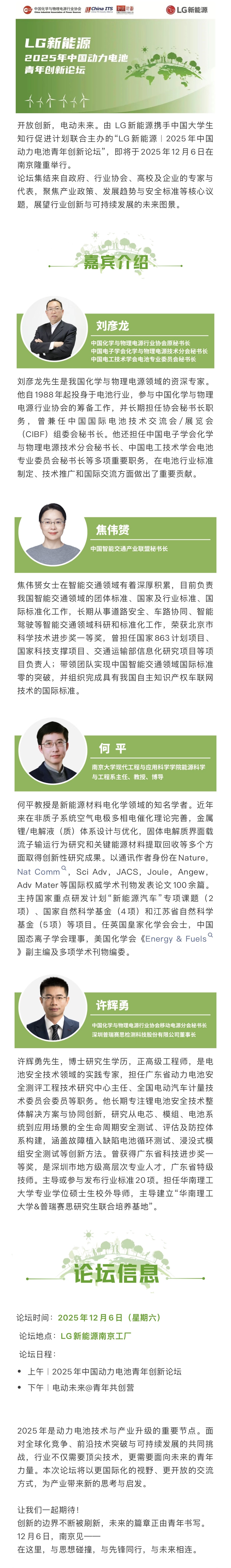 倒计时3天!大咖齐聚 阵容揭晓|LG新能源2025年中国动力电池青年创新论坛倒计时